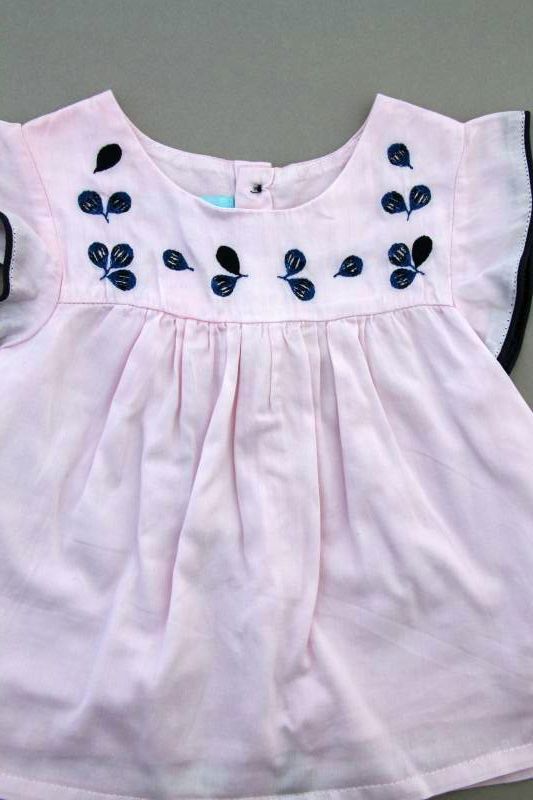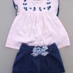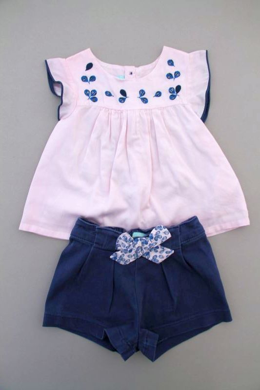 Short doublé rose avec broderie anglaise, pour bébé fille 12 mois, léger pour l'été, avec taille ajustable avec élastique réglable, fermeture zippée et un bouton devant.