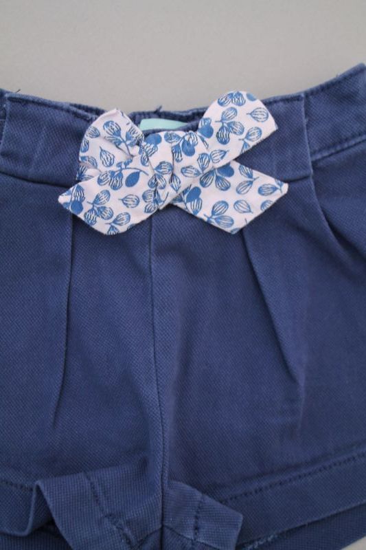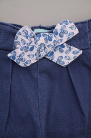 Pantalon court en denim bleu foncé avec fleurs paquerettes brodées, pour bébé fille 12 mois, idéal pour le printemps ou l'été, très souple et confortable à porter, avec une taille...