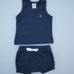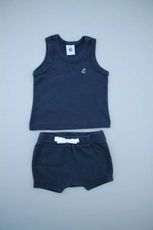 Pyjacourt en jersey fin blanc et bleu, pour bébé garçon 6 mois, comprenant un tee-shirt avec 2 boutons sur la poitrine pour faciliter l'habillage et un short avec taille élastique.