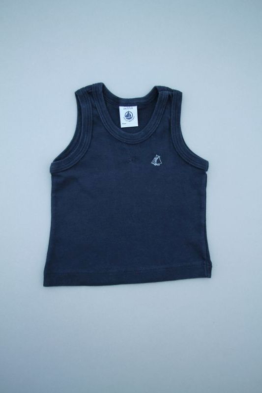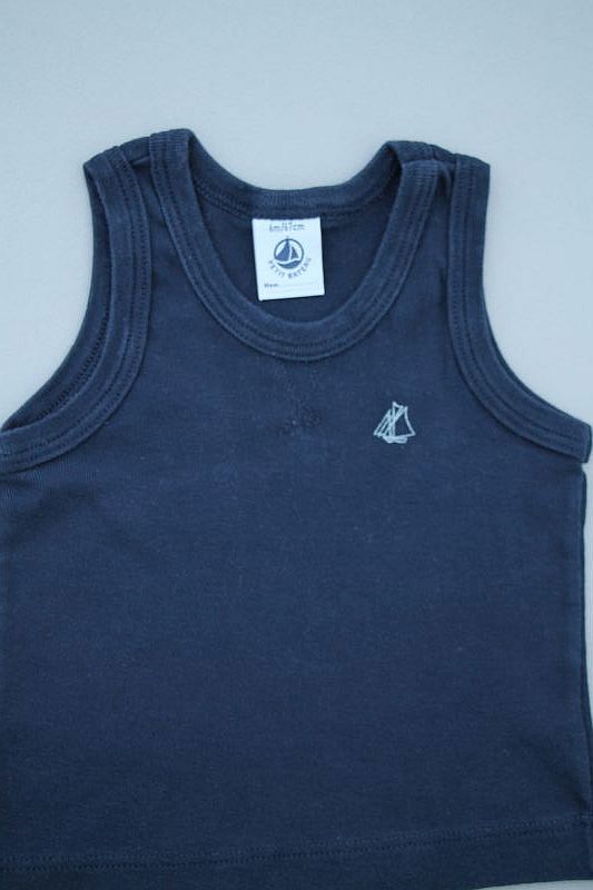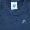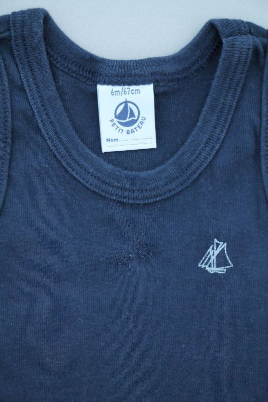 Pyjacourt en jersey rayé bleu marine et blanc, pour bébé garçon 6 mois, léger pour l'été, avec 2 boutons dans le dos et 5 pressions à l'entrejambe pour faciliter l'habillage et le change...
