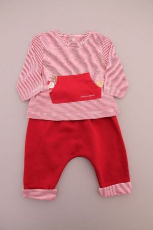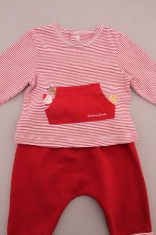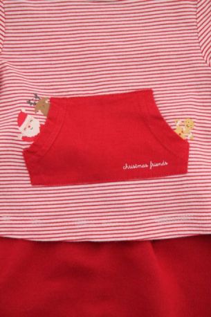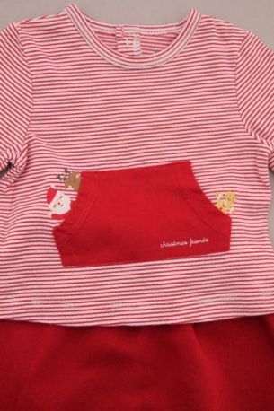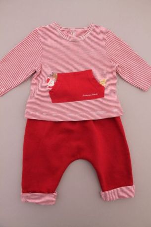 Dors-bien mixte en velours doux rouge et blanc, pour bébé 3 mois, chaud pour les fêtes de Noël, avec renne brodé sur la poitrine et pressions au dos.
