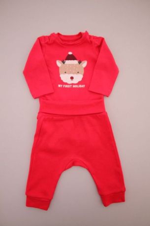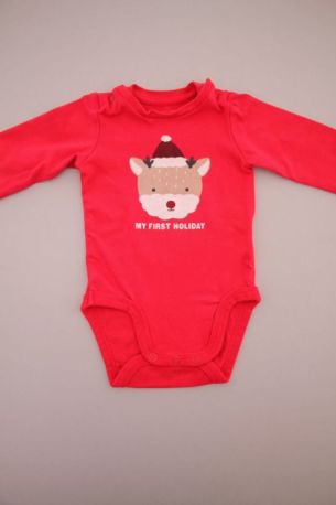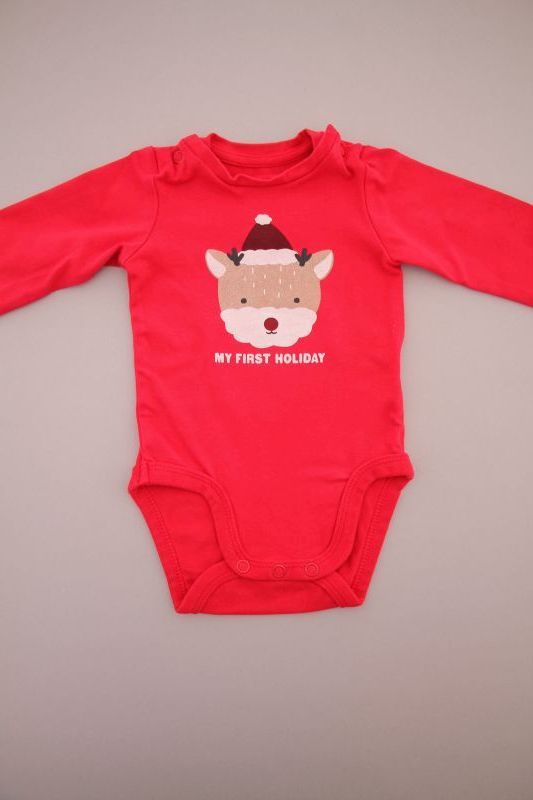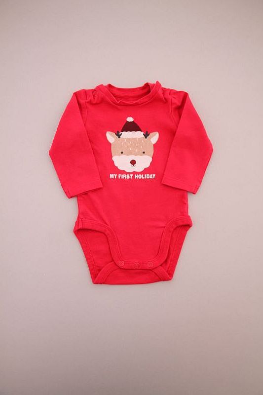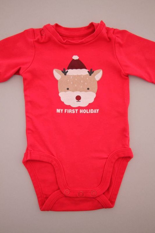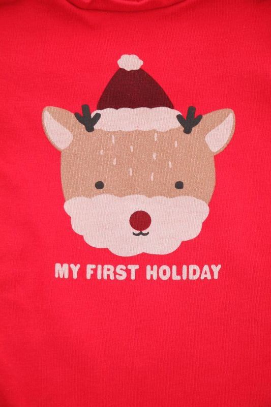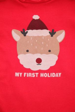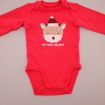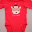 Dors-bien mixte en velours rouge avec renne brodé, pour bébé 1 mois, chaud pour les fêtes de fin d'année : Noël et Nouvel An, avec pressions au dos.