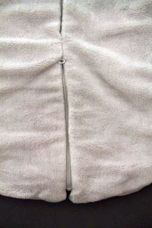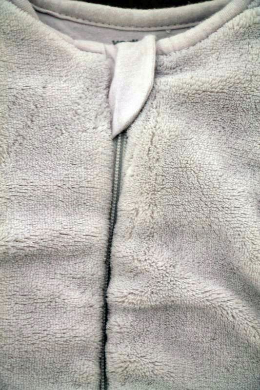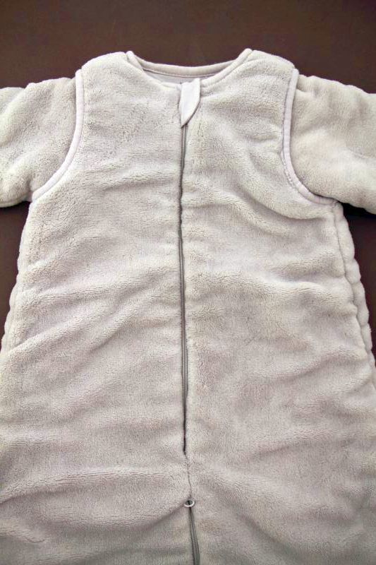 Gigoteuse mixte en molleton beige imprimé marron, pour bébé 3 à 10 mois, chaude pour la mi-saison, l'automne ou l'hiver, avec broderie et fermeture zippée devant.