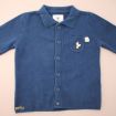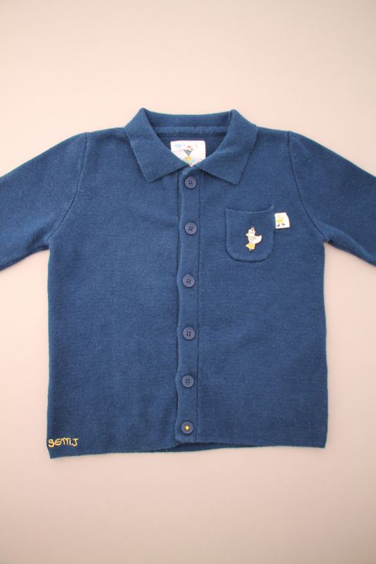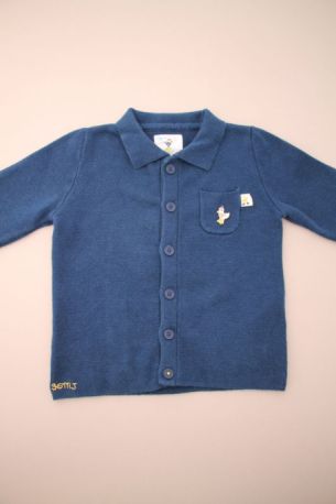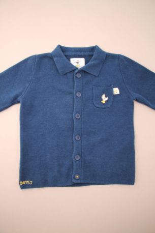 Cardigan en molleton gris clair, pour bébé garçon 24 mois, chaud pour l'hiver ou la mi-saison, avec bord en jersey mmilleraies bleu marine et fermeture zippée.