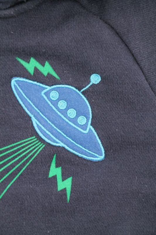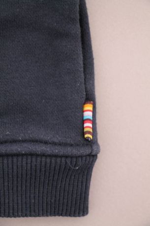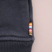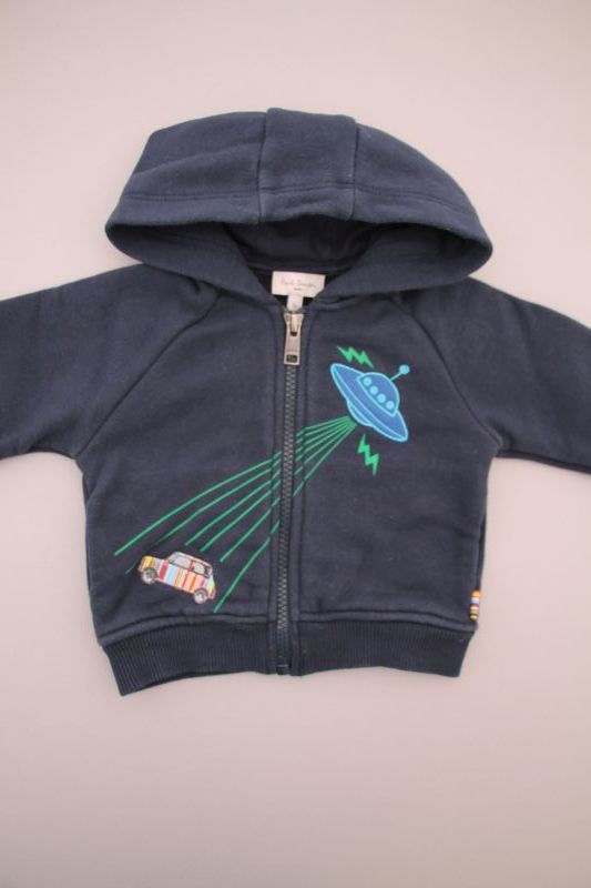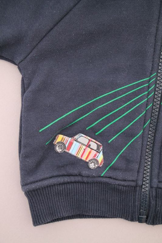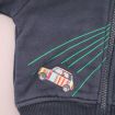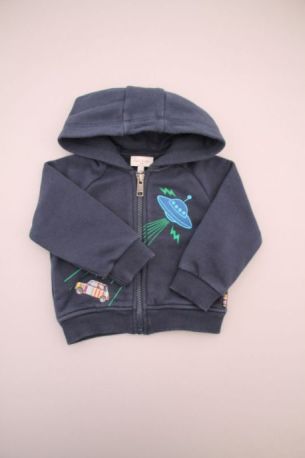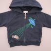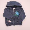 Sweat à capuche zippé bleu marine et gris chiné, pour bébé garçon 12 mois, en molleton chaud pour la mi-saison ou l'hiver, avec broderies, sérigraphies et 2 poches devant.