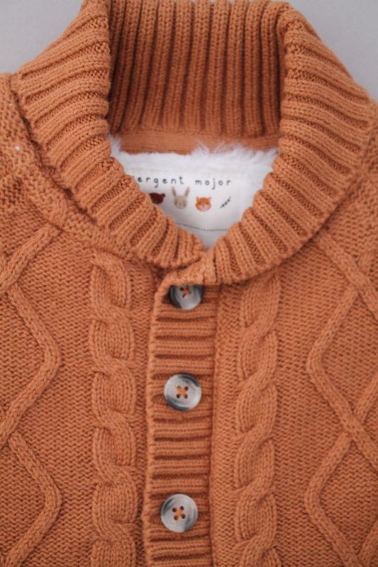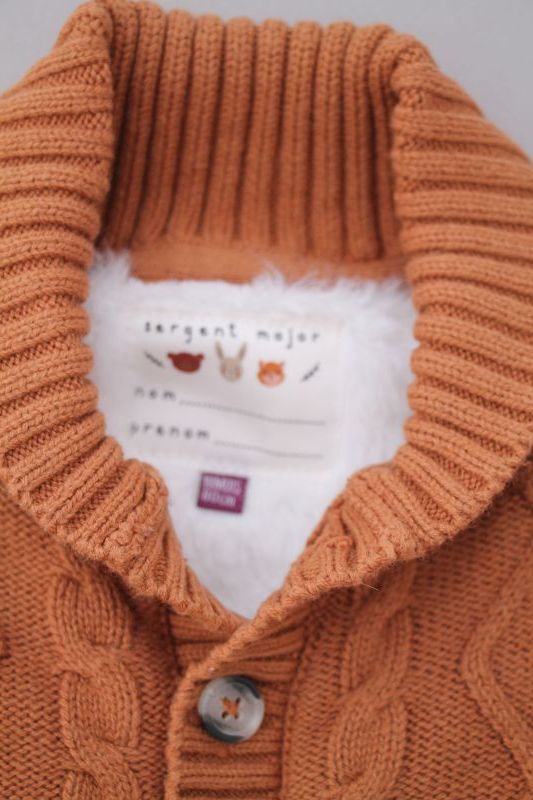 Gilet camel chaud hiver Sergent Major Sergent Major Cardigan à col en tricot torsadé marron clair, pour bébé garçon 18 mois, très chaud pour l'automne ou l'hiver car entièrement doublé polaire écrue toute douce et fermeture par 6 boutons. Composition : Extérieur : 59% coton, 31% polyamide, 10% laine. Doublure : 100% polyester. Lavage à 30°, programme laine délicat. Largeur sous bras : 29 cm. Longueur manches aisselles - poignet : 20 cm. Longueur épaule - base : 31 cm. Occasion en excellent état, comme neuf (valeur neuf : 39,99 €). Taille En stock Expédié en 24/48h Quantité AJOUTER AU PANIER Votre article a bien été ajouté au panier Quantité : × Partager et faites découvrir cet article par mail Vous souhaitez faire connaître ce produit à vos ami(e)s ?Inscrivez simplement leurs noms, prénoms, e-mails et votre message d'accompagnement.Ils pourront ainsi venir directement sur la page que vous avez sélectionnée. Nom(s) et/ou prénom(s) de vos ami(e)s E-mail de vos ami(e)s Votre nom et/ou prénom Votre E-mail Votre message d'accompagnement (1000 caractères maximum) : Nombre de caractères restants : Ne remplissez pas cette case