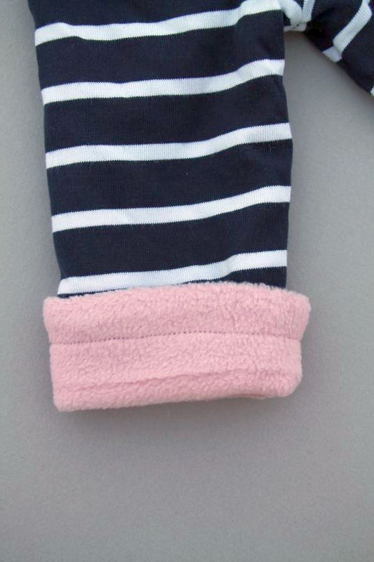 Robe chasuble en jersey de coton épais blanc rayé bleu marine foncé, pour bébé fille 6 mois, chaude pour la mi-saison, avec 3 boutons-pression sur la poitrine pour faciliter l'enfilage...