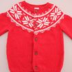 Dors-bien mixte en velours rouge foncé, pour bébé 24 mois, chaud pour les fêtes de fin d'année cet hiver, avec col blanc en popeline de coton brodé "premier Noël", broderie renard et sapins...