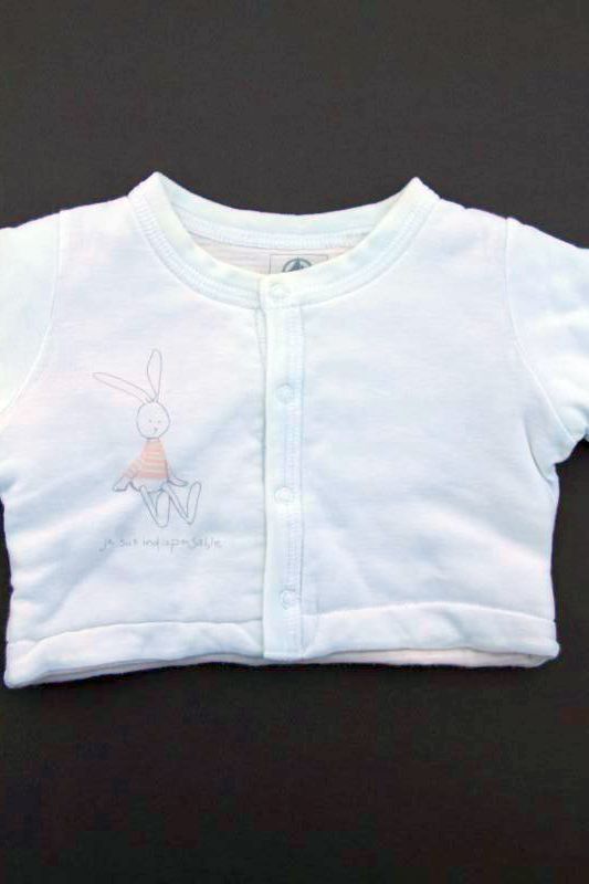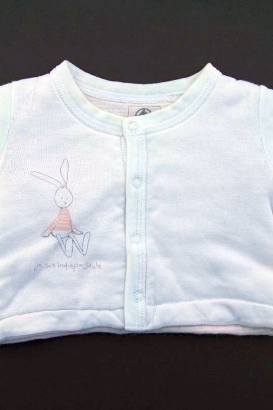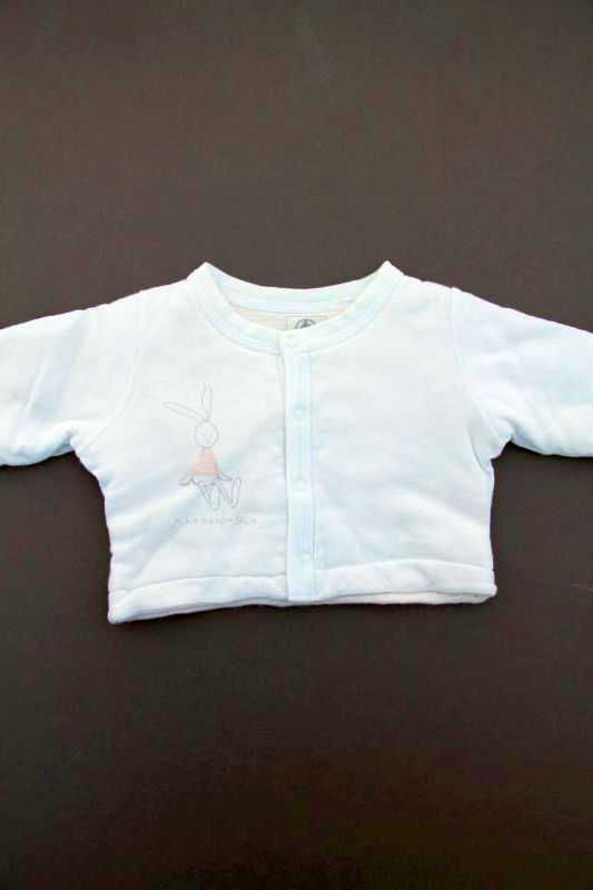 Gilet mixte en molleton Petit Bateau Petit Bateau Cardigan doublé en jersey blanc mixte, pour bébé 1 mois, chaud pour l'été, le printemps ou la mi-saison, avec ouverture pressionnée devant. Composition : Extérieur et Doublure : 100% coton. Garnissage : 100% polyester. Lavage à 40°. Largeur carrure : 21 cm. Largeur sous bras : 26 cm. Longueur manches aisselles - poignet : 11 cm. Longueur épaule - base : 21 cm. Occasion en excellent état (valeur neuf : 20 €). Taille En stock Expédié en 24/48h Quantité AJOUTER AU PANIER Votre article a bien été ajouté au panier Quantité : × Partager et faites découvrir cet article par mail Vous souhaitez faire connaître ce produit à vos ami(e)s ?Inscrivez simplement leurs noms, prénoms, e-mails et votre message d'accompagnement.Ils pourront ainsi venir directement sur la page que vous avez sélectionnée. Nom(s) et/ou prénom(s) de vos ami(e)s E-mail de vos ami(e)s Votre nom et/ou prénom Votre E-mail Votre message d'accompagnement (1000 caractères maximum) : Nombre de caractères restants : Ne remplissez pas cette case