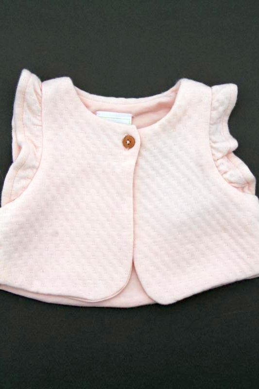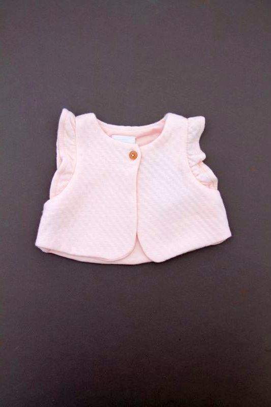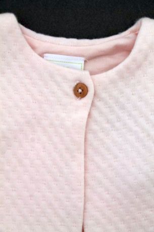 Cardigan en jersey fin rose pâle, pour bébé fille 1 mois, très léger pour le printemps ou l'été, avec fermeture par 4 boutons-pression.