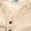 Cardigan court chic en tricot écru pailleté doré, pour bébé fille 3 mois, idéal pour une cérémonie, les fêtes de fin d'année : Noël et Nouvel An, avec fermeture par 4 boutons.