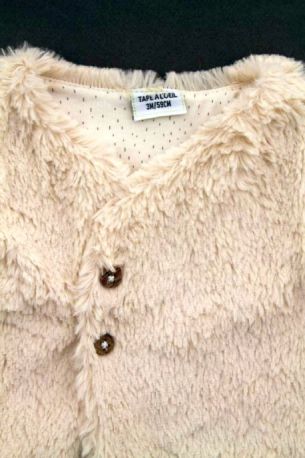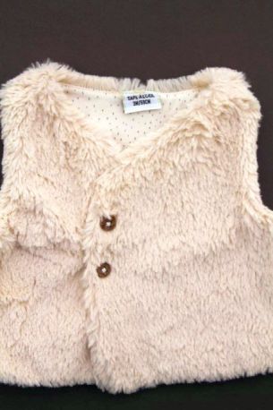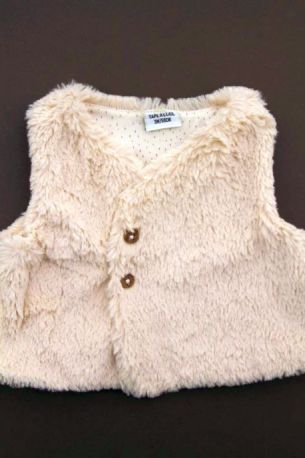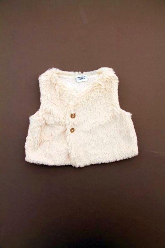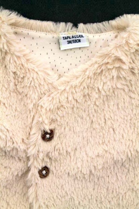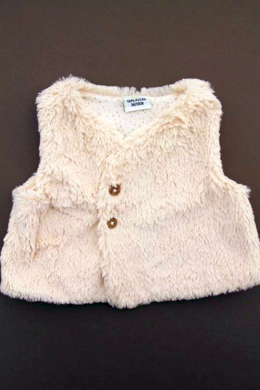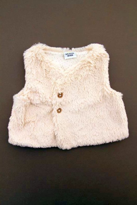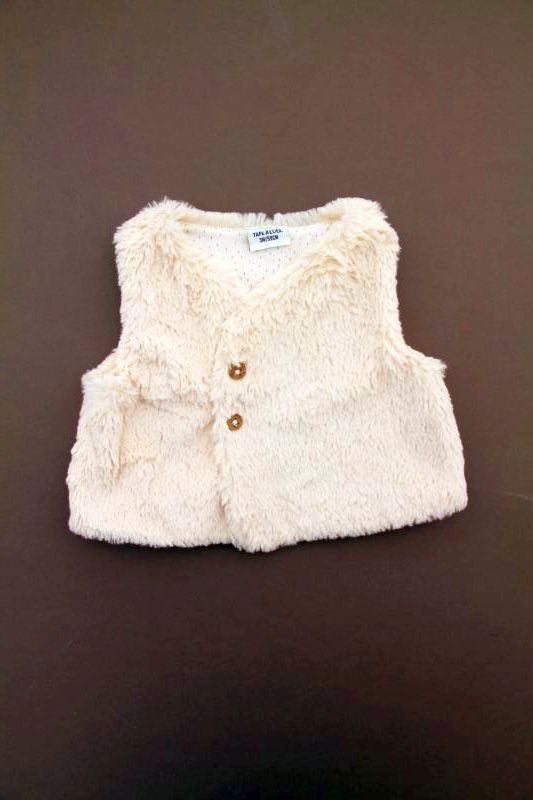 Veste sans manches en fausse fourrure très douce blanc cassé, pour bébé fille 3 mois, chaude pour l'automne ou l'hiver, avec fermeture par un bouton.