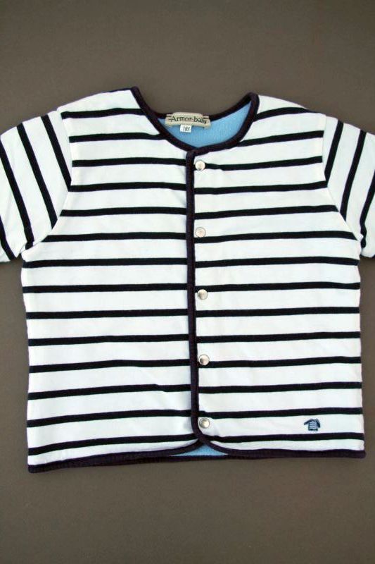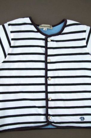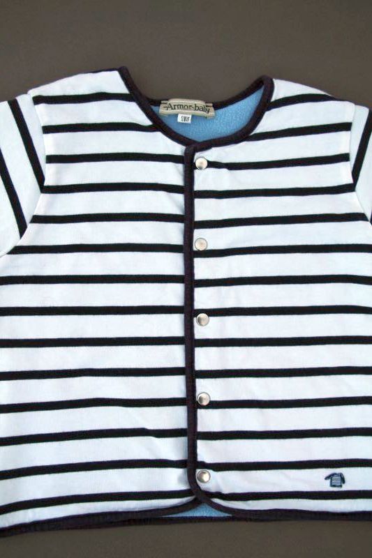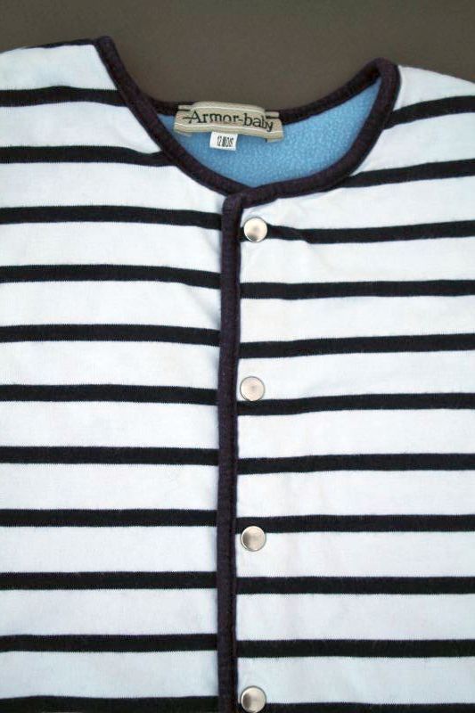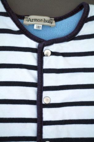 Gilet rayé doublé polaire Armor-baby Toutes les autres Marques Gilet marinière en jersey blanc rayé bleu marine doublé polaire bleu ciel, pour bébé garçon 12 mois, chaud pour l'automne ou l'hiver, avec fermeture pressionnée devant. Composition : Extérieur : 100% coton. Doublure : 100% polyester. Lavage à 30°. Largeur carrure : 24 cm. Largeur sous-bras : 29 cm. Longueur manches aisselles - poignet : 16 cm. Longueur gilet épaule - base : 32 cm. Occasion en excellent état (valeur neuf : 39 €). Taille En stock Expédié en 24/48h Quantité AJOUTER AU PANIER Votre article a bien été ajouté au panier Quantité : × Partager et faites découvrir cet article par mail Vous souhaitez faire connaître ce produit à vos ami(e)s ?Inscrivez simplement leurs noms, prénoms, e-mails et votre message d'accompagnement.Ils pourront ainsi venir directement sur la page que vous avez sélectionnée. Nom(s) et/ou prénom(s) de vos ami(e)s E-mail de vos ami(e)s Votre nom et/ou prénom Votre E-mail Votre message d'accompagnement (1000 caractères maximum) : Nombre de caractères restants : Ne remplissez pas cette case