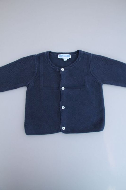 Cardigan bleu marine foncé en tricot épais, pour bébé 6 mois, chaud pour la mi-saison, avec fermeture par 4 boutons.