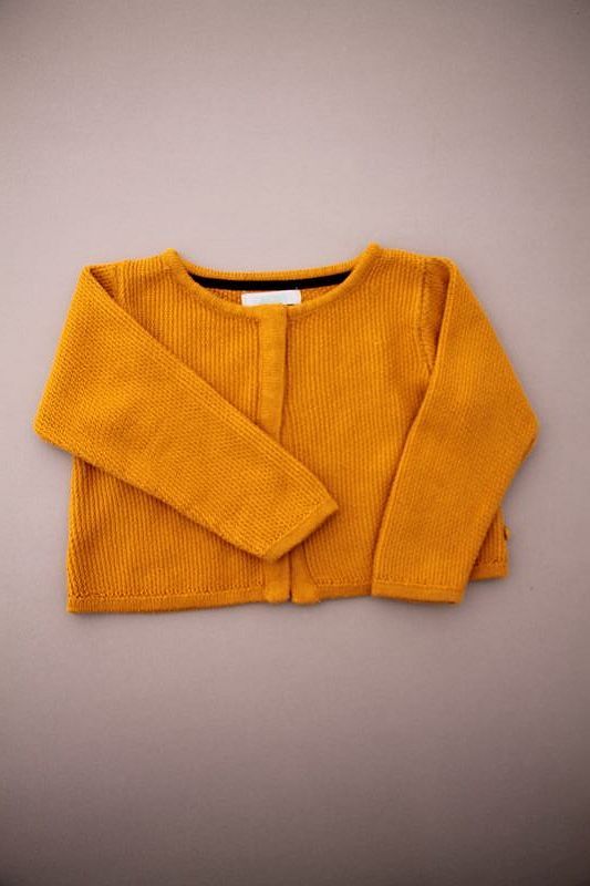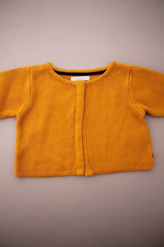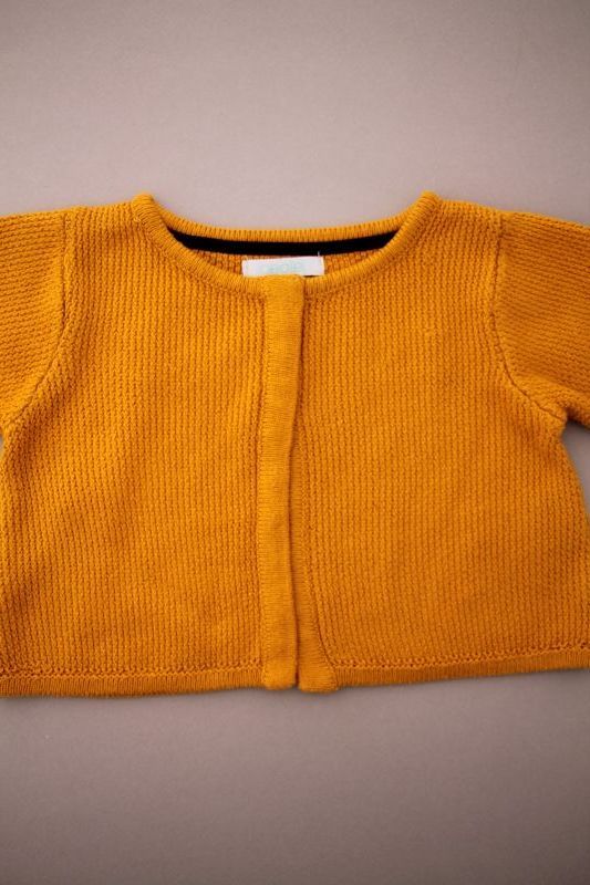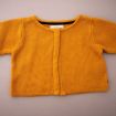 Cardigan en maille douce aubergine à pompons, pour bébé fille 18 mois, chaud pour l'automne ou l'hiver, avec bord rose fuchsia et fermeture par un crochet sur la poitrine.