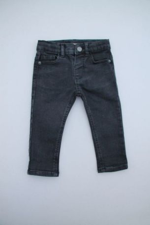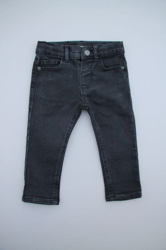 Pantalon slim mixte en denim gris, pour bébé 9 mois, souple et confortable, idéal pour la mi-saison, avec ceinture élastique.