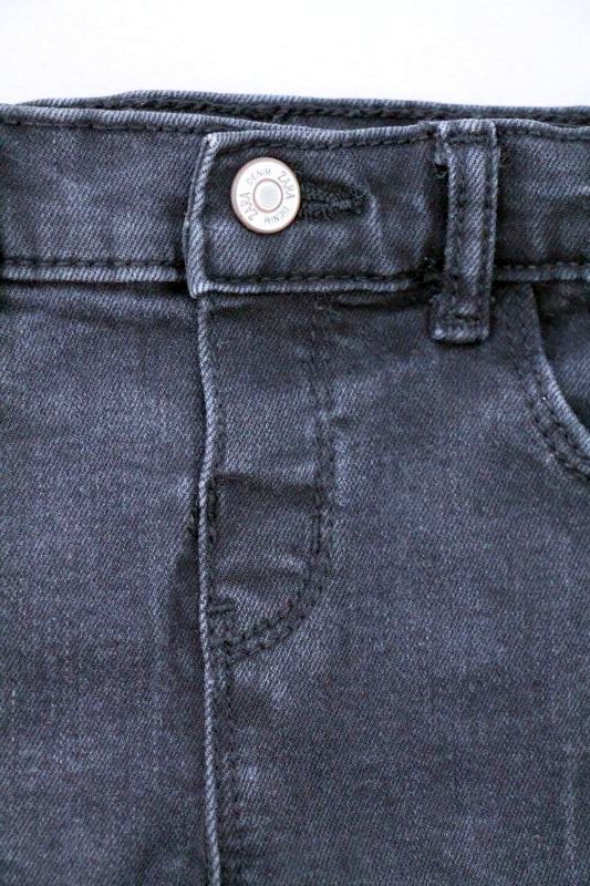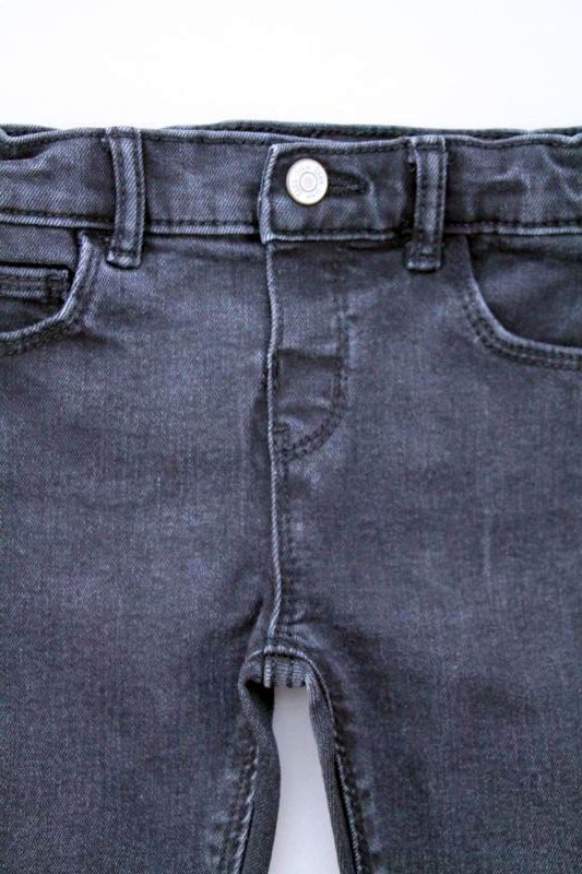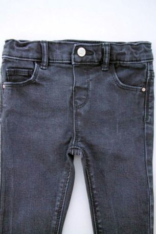 Pantalon slim en denim bleu foncé mixte, pour bébé 18 mois, idéal pour la mi-saison ou le printemps, souple et très confortable à porter, avec taille au 3/4 élastiquée et un...