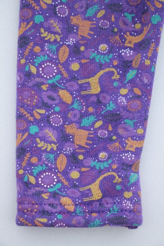Cardigan court en maille douce et fine violette, pour bébé fille 18 mois, chaude pour le printemps ou l'été, avec toucan coloré brodé et fermeture par 4 boutons.
