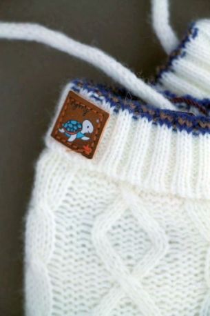 Moufles mixtes en tricot bleu marine jacquard, pour bébé 6 à 12 mois, très chaudes pour l'hiver car entièrement doublées polaire, avec cordon pour ne pas les perdre.