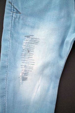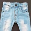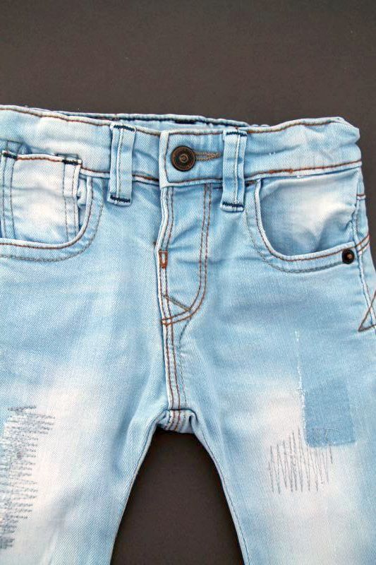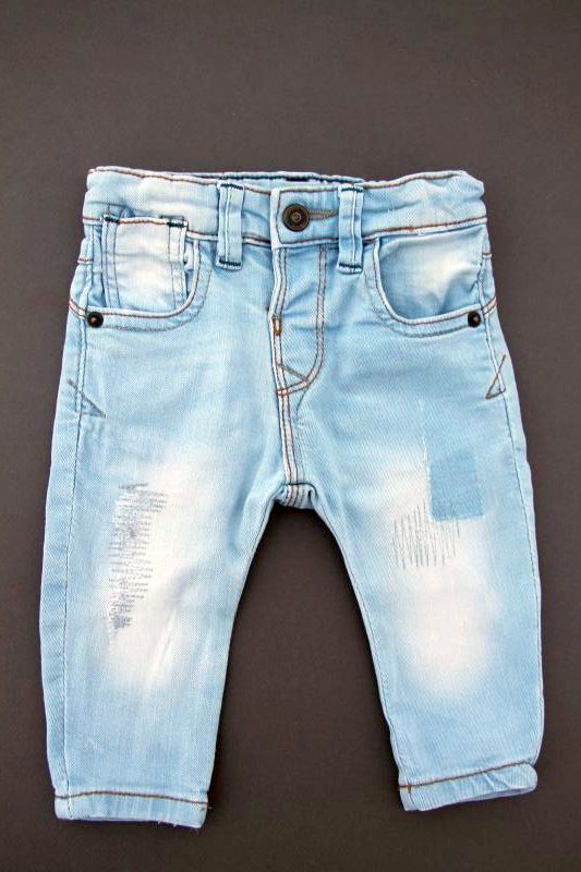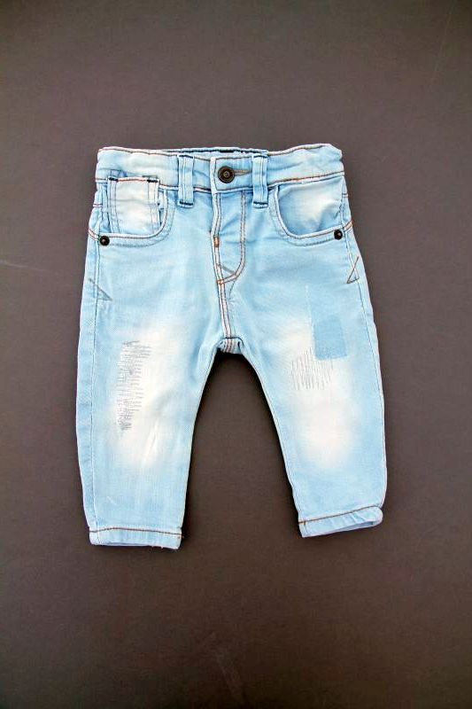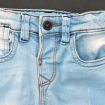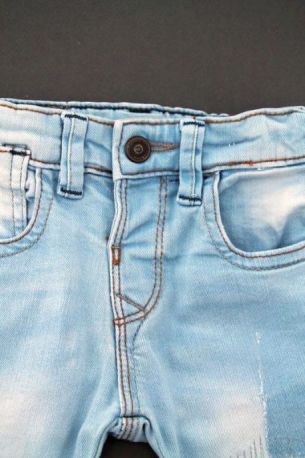 Salopette courte en denim doux bleu, pour bébé garçon 6 mois, très souple et confortable à porter, idéal pour le printemps ou l'été, avec 1 bouton de chaque côté des hanches, bretelles...