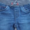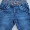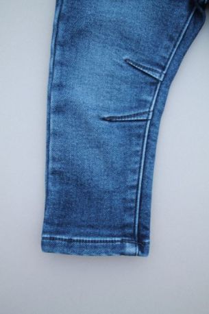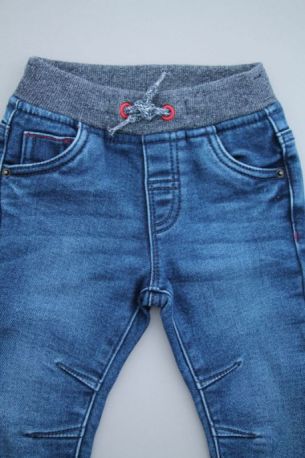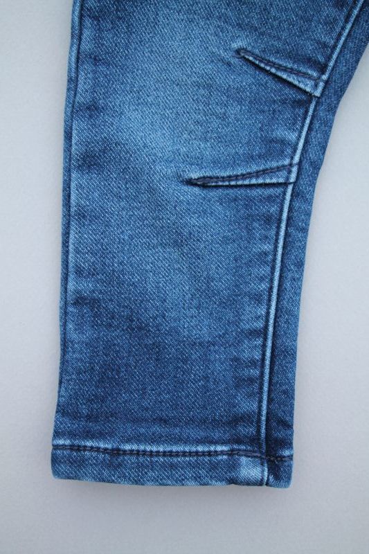 Pantalon en denim brut bleu foncé, pour bébé garçon 12 mois, souple et confortable, chaud pour l'hiver ou la mi-saison car entièrement doublé en jersey de coton bleu marine, avec taille au 3/4...