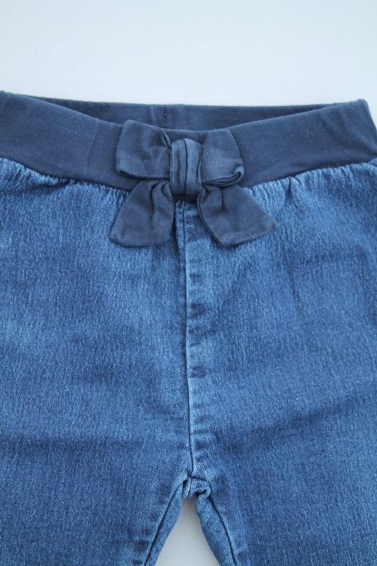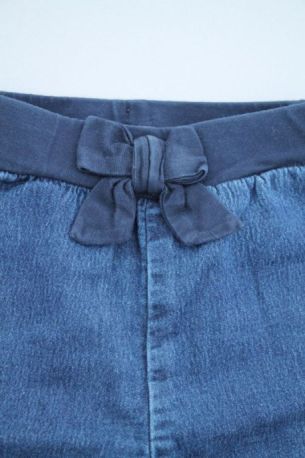 Pantalon court en denim bleu foncé avec fleurs paquerettes brodées, pour bébé fille 12 mois, idéal pour le printemps ou l'été, très souple et confortable à porter, avec une taille...