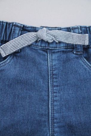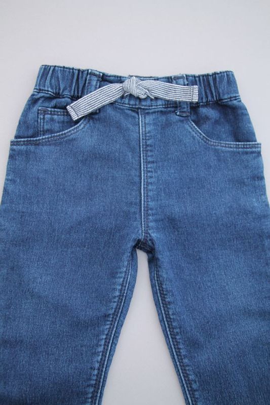 Veste mixte en denim stretch bleu jean, pour bébé 12 mois, chaude pour la mi-saison ou le printemps, très confortable à porter, avec abeille brodée et ouverture pressionnée.