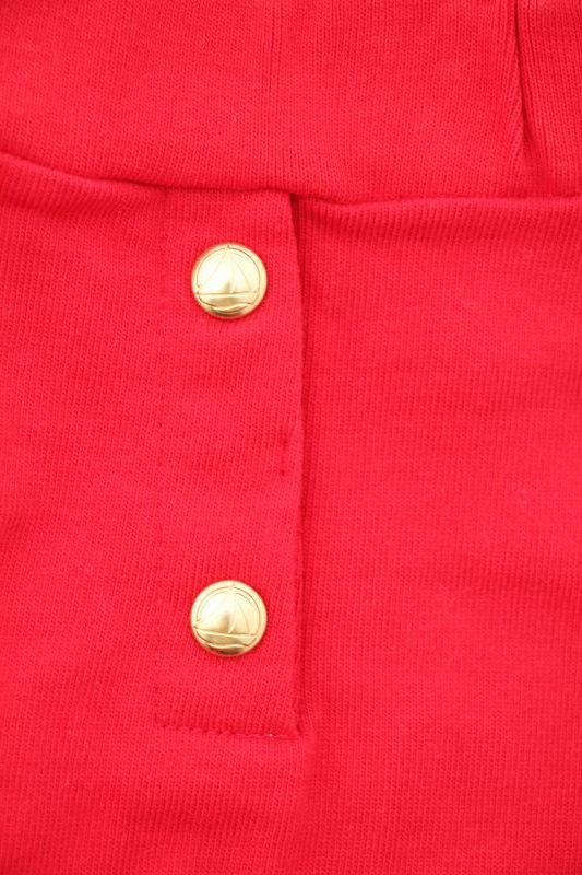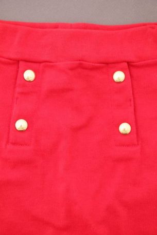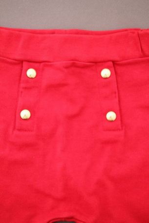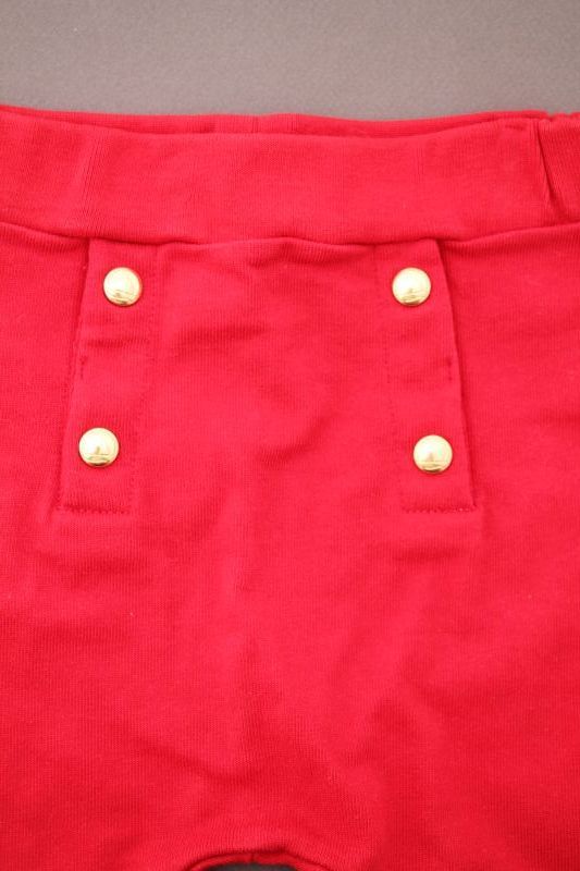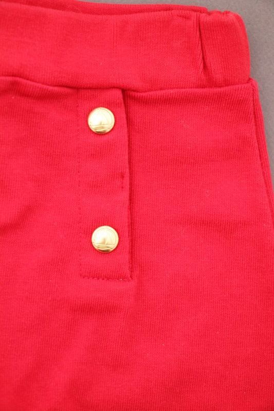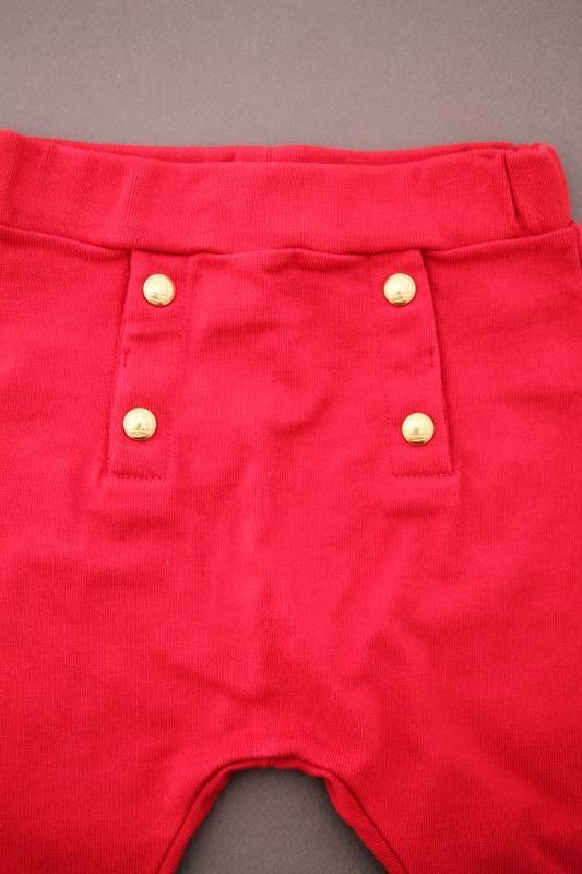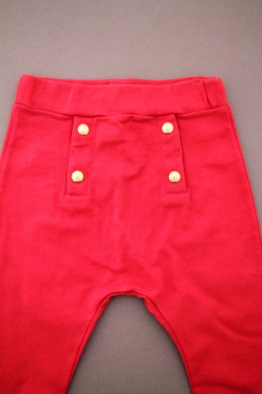 Pantalon slim en velours doux rouge bord argenté, pour bébé fille 12 mois, souple et confortable à porter, chaud pour l'hiver, avec taille au 3/4 élastiquée et un bouton-pression devant...