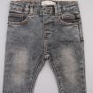 Pantalon en denim brut bleu, pour bébé garçon 9 mois, souple et confortable, idéal pour la mi-saison, avec taille ajustable avec élastique réglable et revers possible.