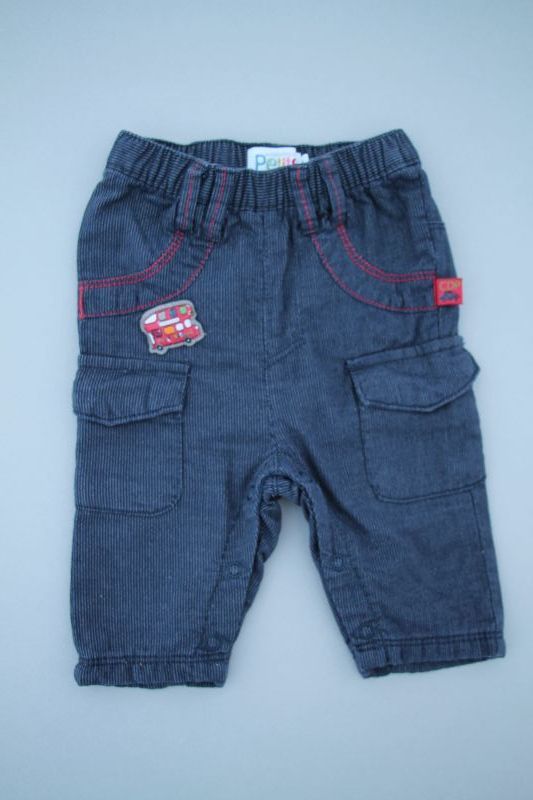 Pantalon jean en denim bleu avec revers en velours vert, pour bébé garçon 3 mois, souple et confortable, chaud pour l'hiver ou la mi-saison car entièrement doublé en jersey de coton, avec taille...