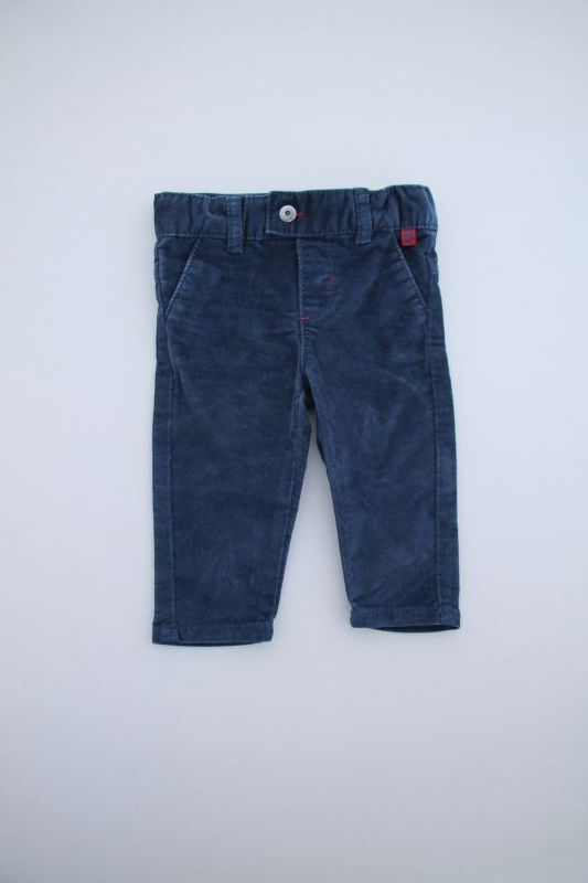 Pantalon mixte en velours côtelé bleu canard, pour bébé 3 mois, chaud pour l'automne ou l'hiver, souple et confortable à porter, avec ceinture 1/2 élastiquée et 2 boutons-pression de chaque...