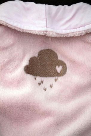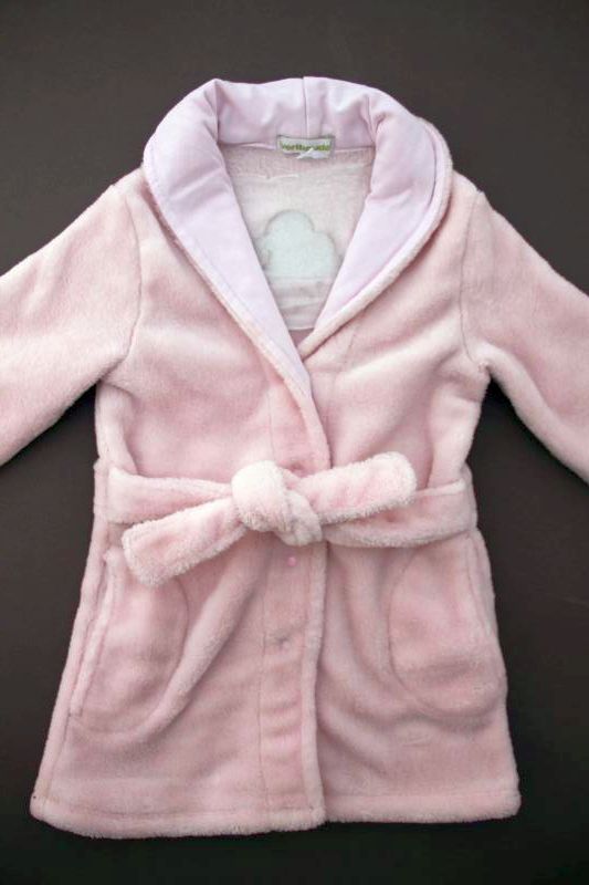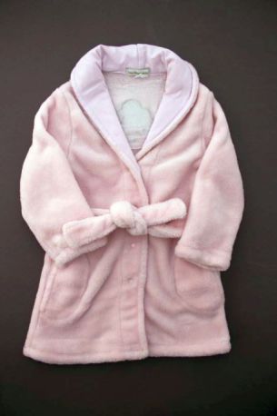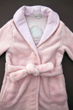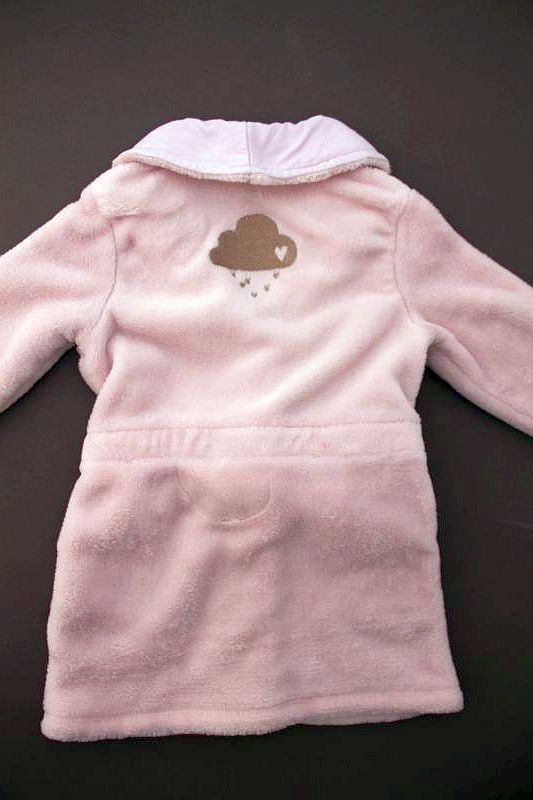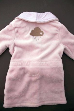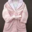 Peignoir à capuche en éponge rose pâle avec poches et bord en popeline imprimée, pour bébé fille 24 à 36 mois, idéal pour la sortie du bain, avec poches et bord en popeline imprimée et...