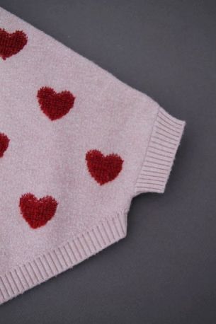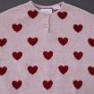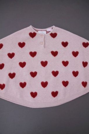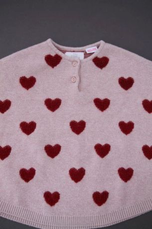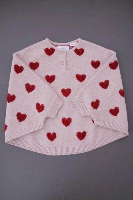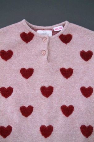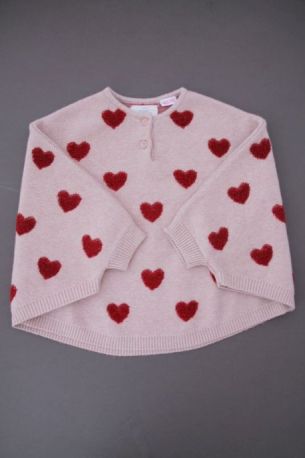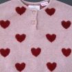 Cardigan en maille douce aubergine à pompons, pour bébé fille 18 mois, chaud pour l'automne ou l'hiver, avec bord rose fuchsia et fermeture par un crochet sur la poitrine.