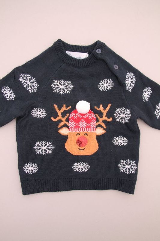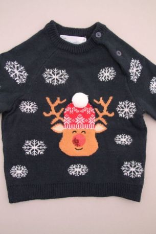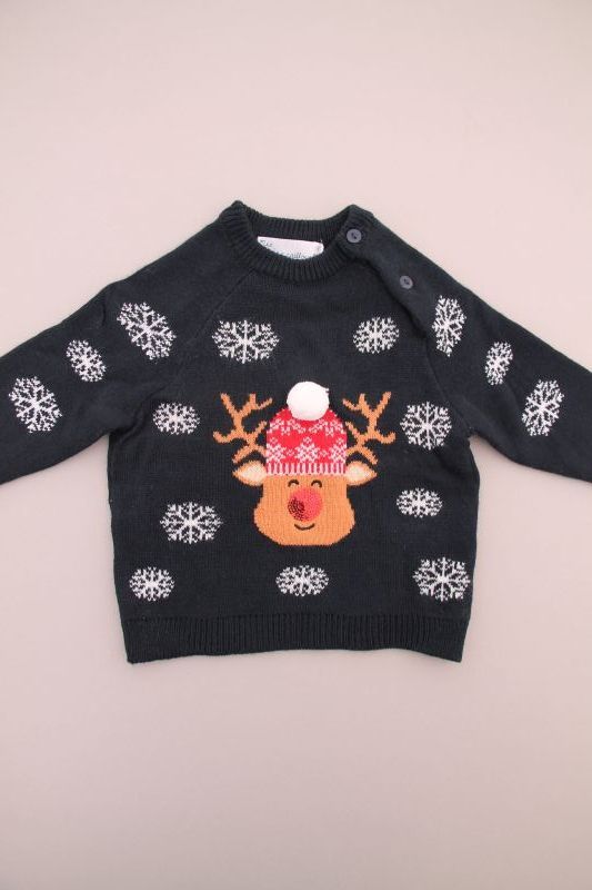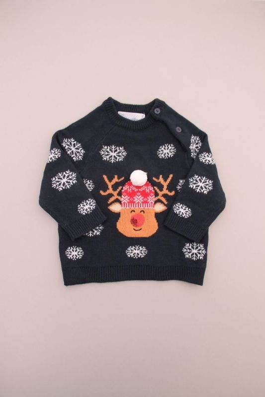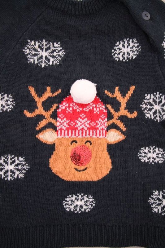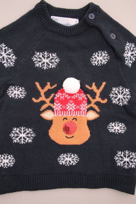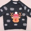 Sweat mixte bleu marine foncé imprimé Noël, pour bébé 3 à 6 mois, chaud pour les fêtes de fin d'année cet hiver.