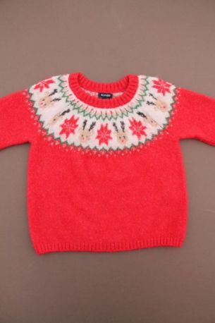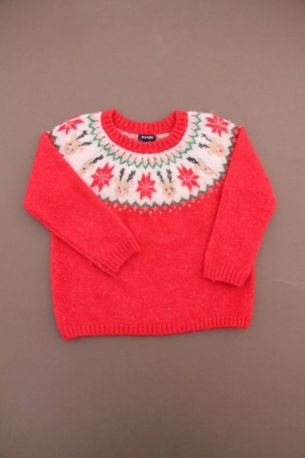 Pull de Noël mixte en tricot rouge motif Père Noël, pour bébé 6 mois, chaud pour les fêtes de fin d'année, avec 2 boutons sur l'épaule gauche pour faciliter l'enfilage
