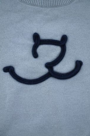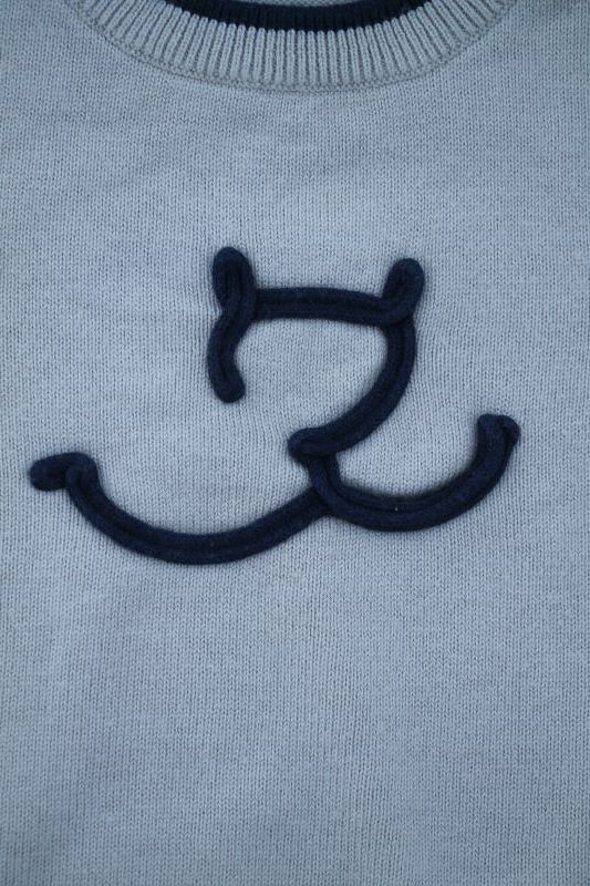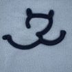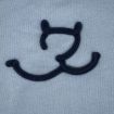 Pull à capuche en tricot fin bleu ciel bord bleu roi et blanc, pour bébé garçon 12 mois, idéal pour le printemps, l'été ou la mi-saison, avec broderie "J" côté coeur et 3 boutons sur la...