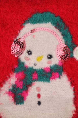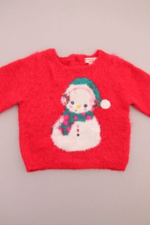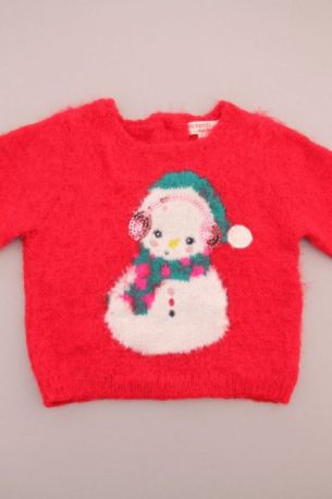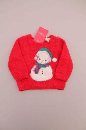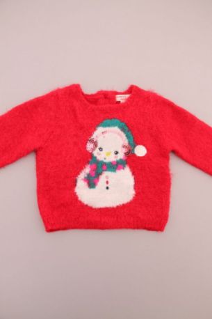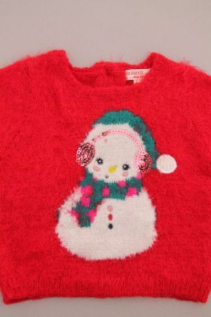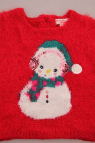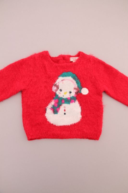 Pull de Noël en tricot doux rouge, rose et écru, pour bébé fille 6 mois, chaud pour l'hiver, avec broderie devant, col volanté et fermeture boutonnée tout le long du dos pour faciliter...