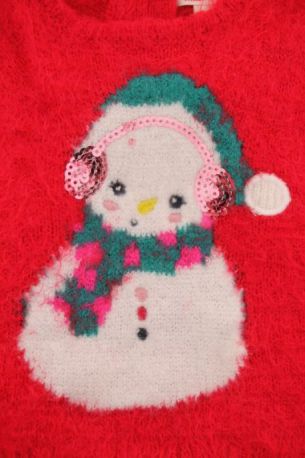 Robe à manches courtes en tricot rouge flocons blancs, pour bébé fille 3 mois, chaude pour l'hiver et idéale pour les fêtes de fin d'année, avec 3 boutons dans le dos pour faciliter...