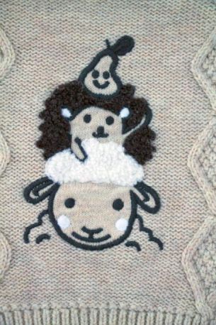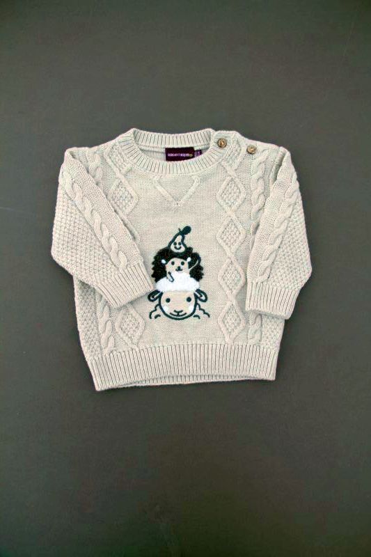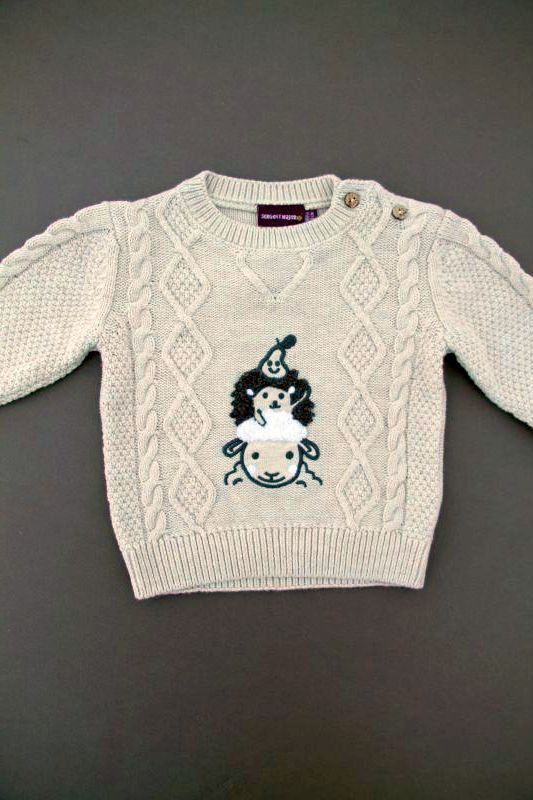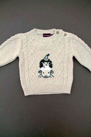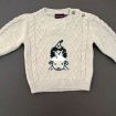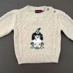 Pull écru en tricot, pour bébé garçon 3 mois, très doux et chaud pour l'hiver, avec motif tête de renard devant et 2 boutons sur l'épaule gauche pour faciliter l'enfilage.