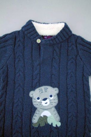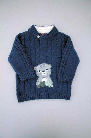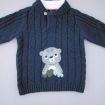 Pull en tricot doux souple et épais bleu marine foncé, pour bébé garçon 12 mois, chaud pour la mi-saison, avec motif ancre devant et 1 bouton de chaque côté des épaules pour faciliter...
