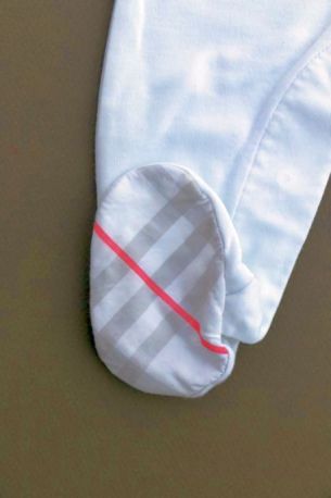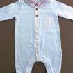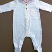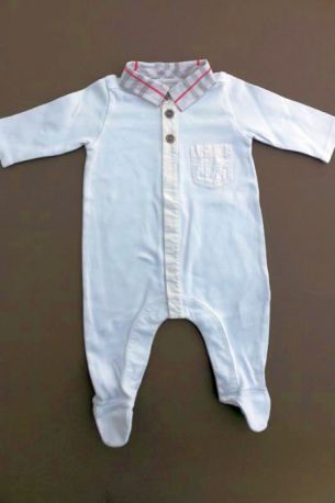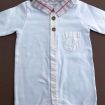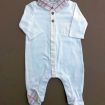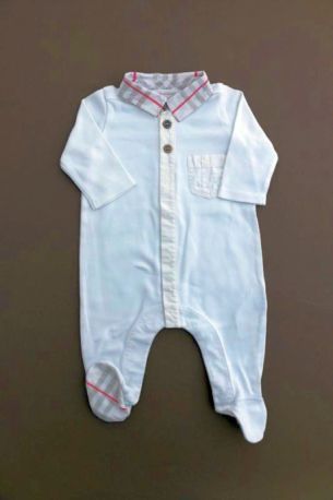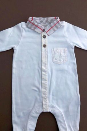 Dors-bien habillé en jersey blanc avec col en popeline rayé bleu marine, pour bébé garçon 3 mois, léger pour l'été, avec broderies "TC" sur la poitrine, 3 boutons nacrés décoratifs sur la...