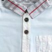 Chemise blanche rayée bleue à col Mao, pour bébé garçon 3 mois, légère pour l'été ou la mi-saison, avec 4 boutons nacrés sur la poitrine pour faciliter l'habillage.