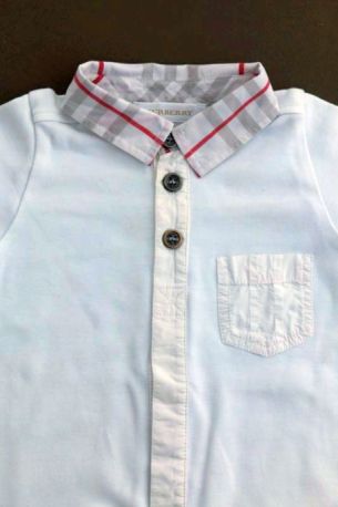Body blanc à col brodé et manches courtes, pour bébé garçon 3 mois, léger pour le printemps ou l'été, avec 4 boutons-pression dans le dos pour faciliter l'habillage.