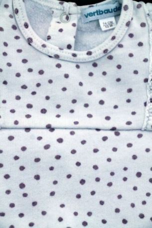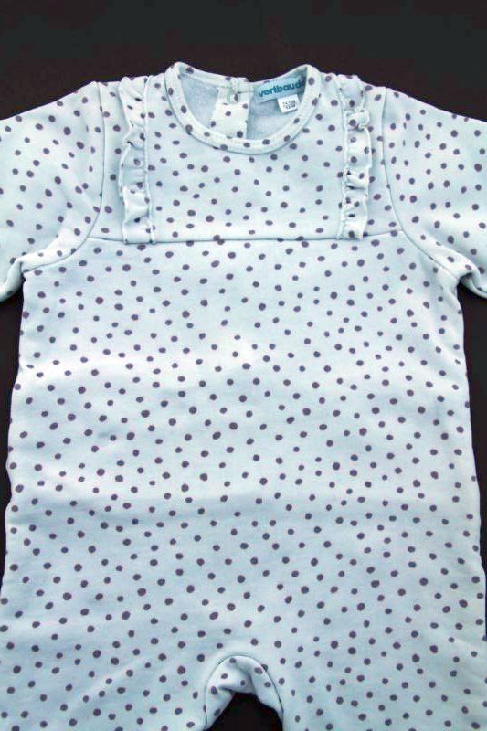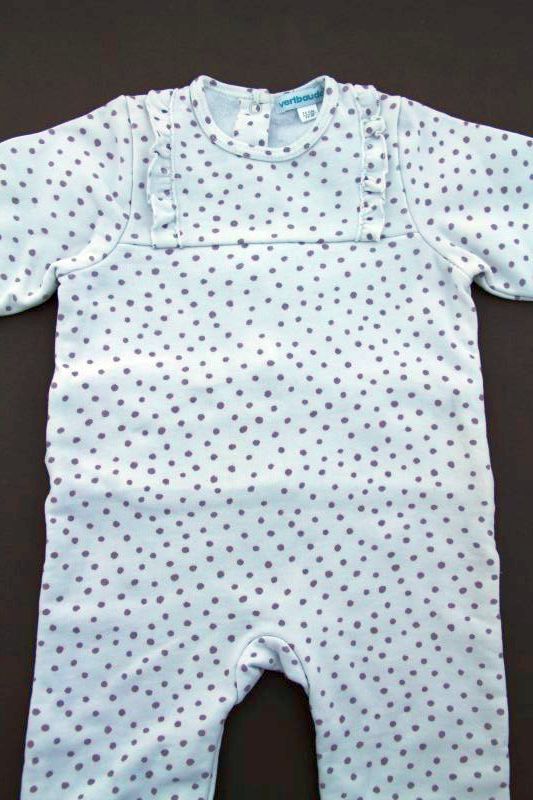 Pyjama chaud à volants Vertbaudet Toutes les autres Marques Dors-bien à volants en molleton blanc à pois mauve clair, pour bébé fille 12 mois, chaud pour l'automne, l'hiver ou la mi-saison, avec sous-pieds antidérapants et pressions au dos. Composition : 80% coton, 20% polyester. Lavage à 40°. Longueur épaule - pied : 49 cm. Occasion en excellent état, comme neuf (valeur neuf : 22,99 €). Taille En stock Expédié en 24/48h Quantité AJOUTER AU PANIER BébéMarques vous conseille également Cardigan en maille neuf Obaïbi -50% Gilet cache-coeur ajouré en tricot doux mauve, pour bébé fille 12 mois, doux et chaud pour la mi-saison ou l'hiver, avec fermeture par cordons et 3 boutons nacrés. Composition : 100%... 19.99 € 9.90 € 12 mois Votre article a bien été ajouté au panier Quantité : × Partager et faites découvrir cet article par mail Vous souhaitez faire connaître ce produit à vos ami(e)s ?Inscrivez simplement leurs noms, prénoms, e-mails et votre message d'accompagnement.Ils pourront ainsi venir directement sur la page que vous avez sélectionnée. Nom(s) et/ou prénom(s) de vos ami(e)s E-mail de vos ami(e)s Votre nom et/ou prénom Votre E-mail Votre message d'accompagnement (1000 caractères maximum) : Nombre de caractères restants : Ne remplissez pas cette case