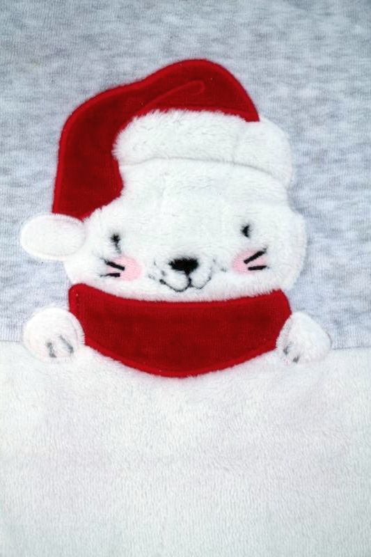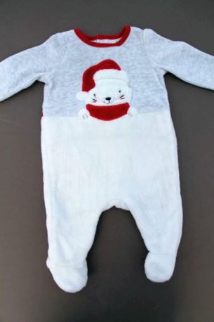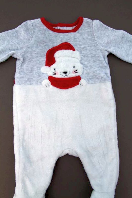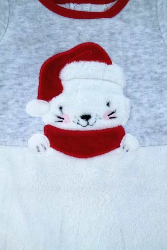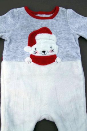 Dors-bien mixte de Noël en velours blanc imprimé, pour bébé 1 mois, chaud pour les fêtes de fin d'année, avec pressions devant et entre les jambes pour faciliter le change.