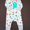 Dors-bien mixte en jersey écru imprimé chien, pour bébé 0 à 3 mois (taille très grand, correspond plutôt à un bon 3 mois), léger pour le printemps ou l'été, avec fermeture zippée devant...