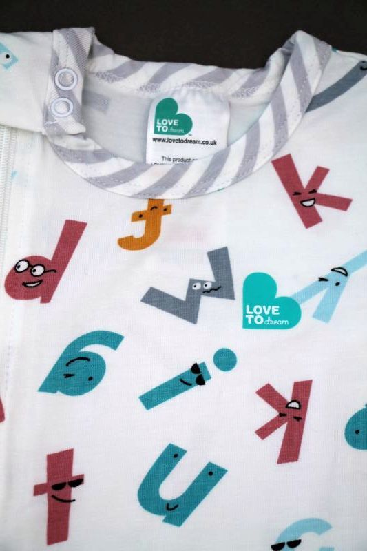 Dors-bien blanc imprimé coloré, pour bébé 3 mois, léger pour l'été en jersey de coton fin, avec pressions devant et entre les jambes pour faciliter l'habillage et le change.