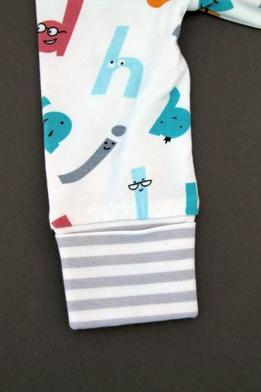Dors-bien mixte en jersey doux écru imprimé lapins gris, pour bébé 3 mois, léger pour le printemps, l'été ou la mi-saison, avec pressions devant et entre les jambes pour faciliter l'habillage...