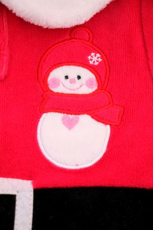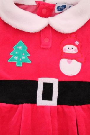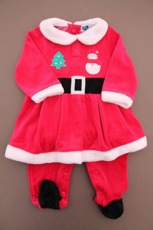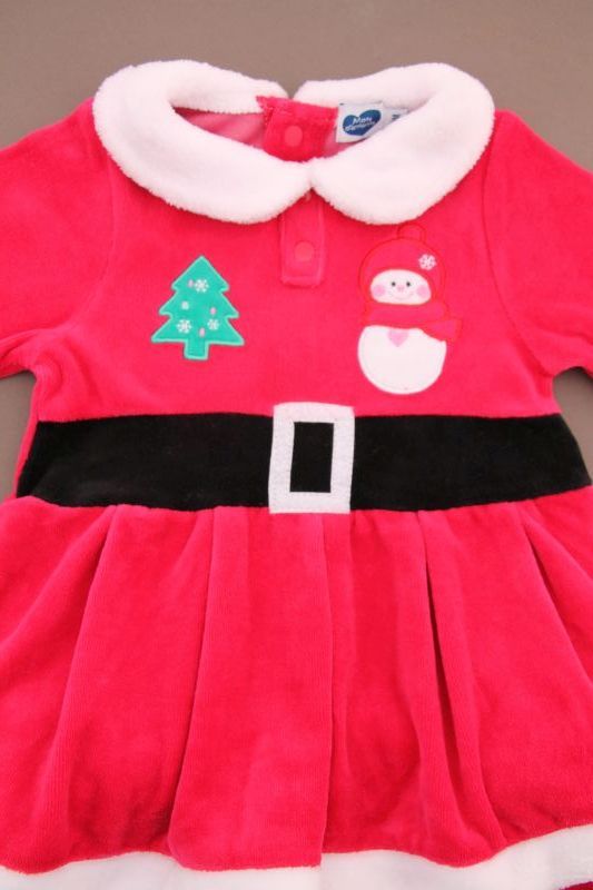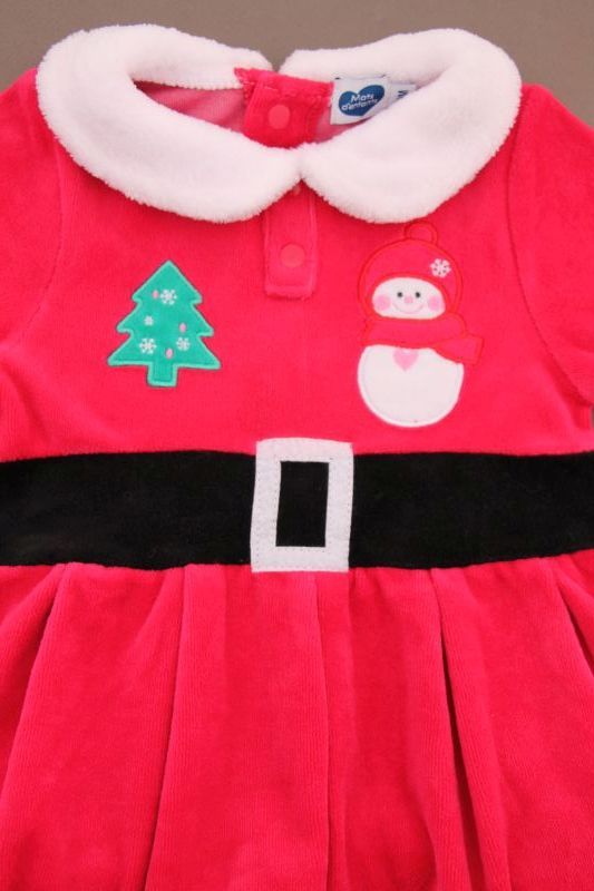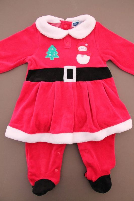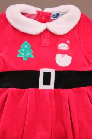 Dors-bien de Noël n velours doux rouge bord blanc, pour bébé fille 9 mois, chaud pour les fêtes de fin d'année cet hiver, avec tête de Mickey brodé sur la poitrine, chevilles élastiquées...