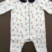 Pyjama en polaire toute douce blanc cassé avec baleines brodées, pour bébé fille 9 mois, très chaud pour l'automne ou l'hiver, avec col en jersey blanc imprimé floral bleu et fermeture zippée...